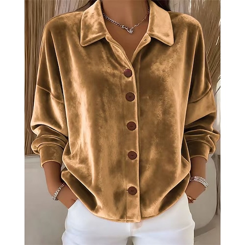 Per donna Camicia Velluto Elegant Elegante Tinta unica Elegante Manica Lunga Colletto a Camicia Top Regolari Lavoro Ferie Uscire Tasca Bottoni Verde militare Fucsia Marrone Primavera Autunno