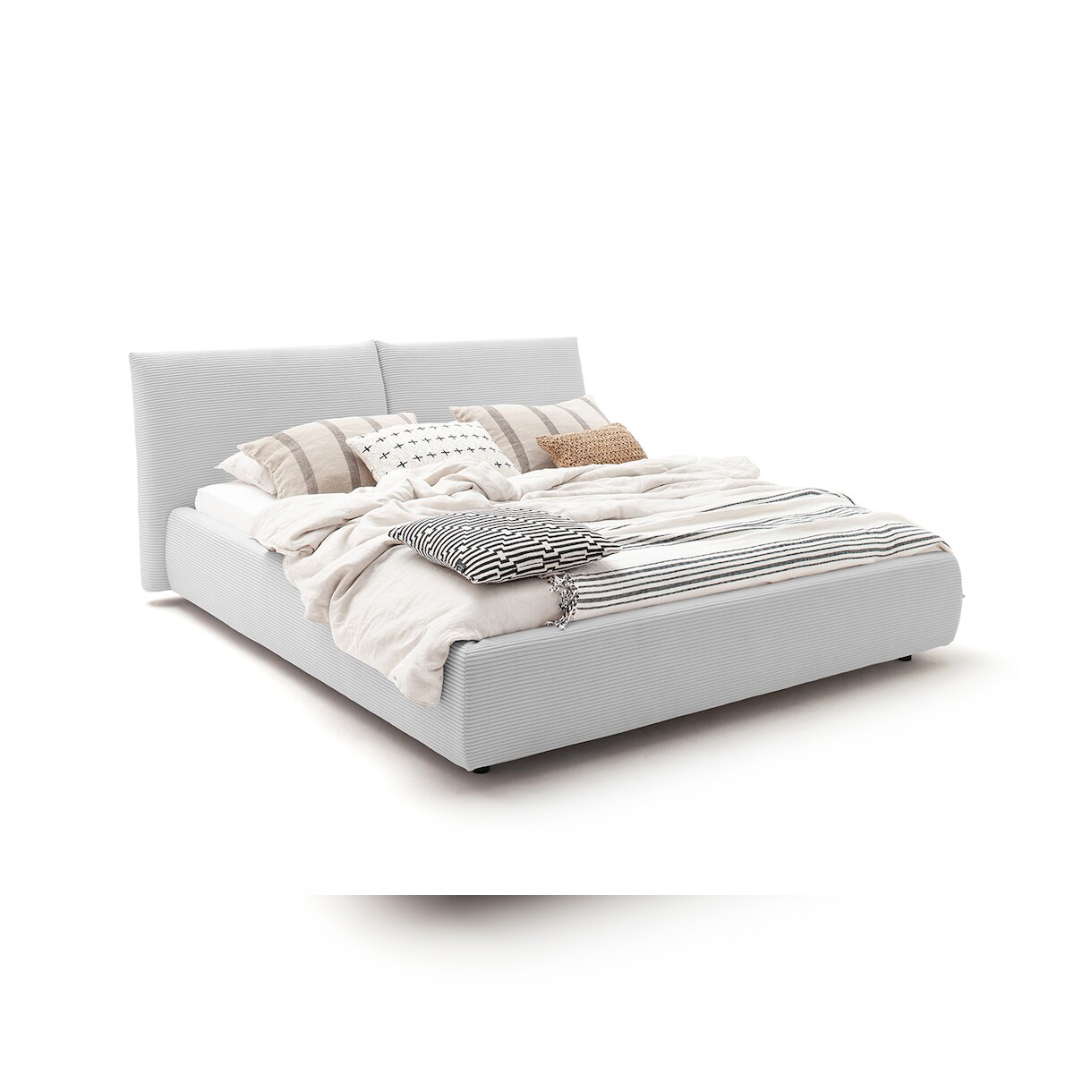 KAWOLA Bett HENRY Polsterbett Cord hellgrau 200x200cm