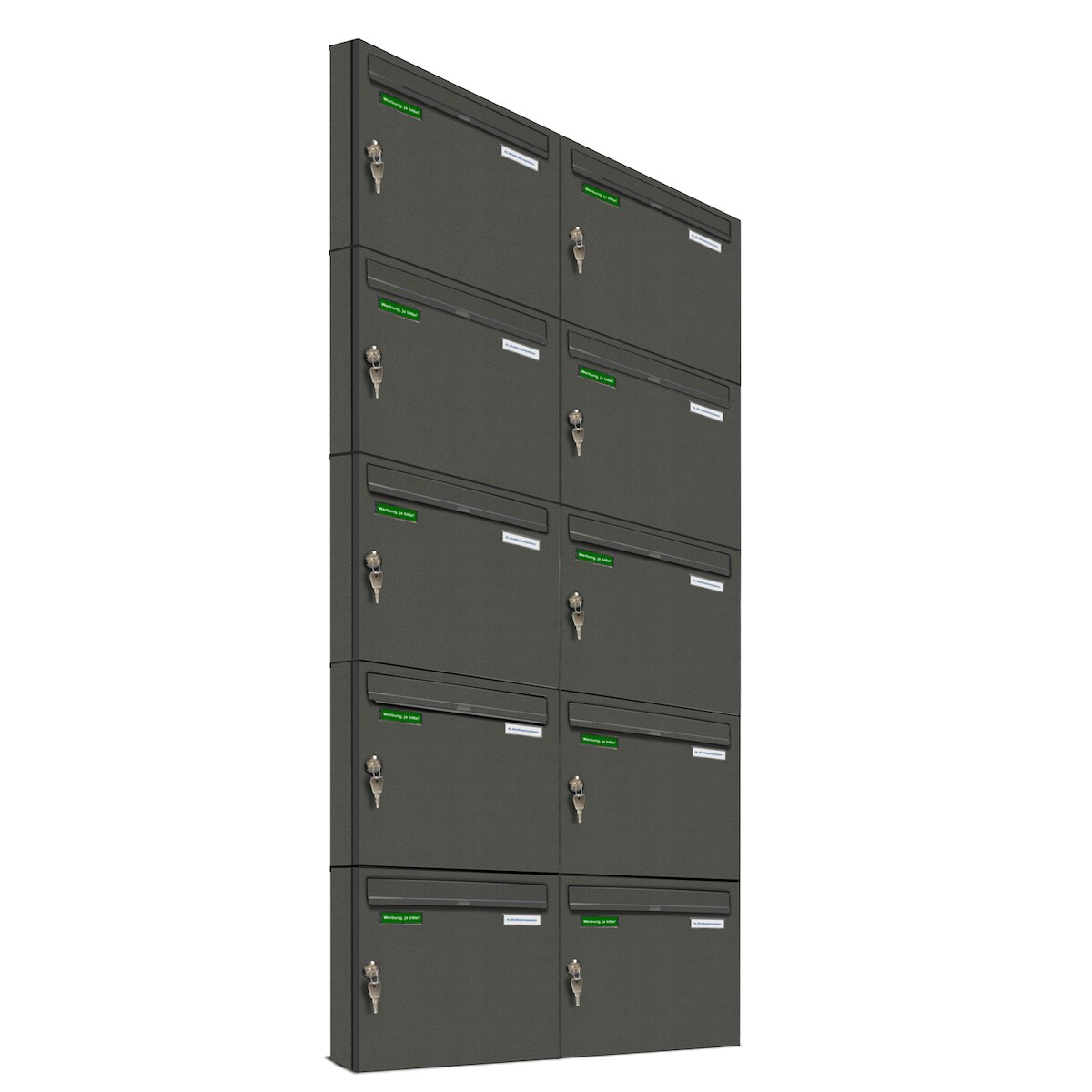 AL Briefkastensysteme 10 x Basic Wand Briefkasten DB Farbe 703 Eisenglimmer Grau für Post A4, wetterfest, Artikelnummer: 431P10EA2PDB703