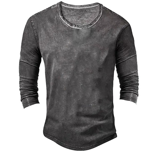 Per uomo Maglia Henley Camicia 100% cotone lavaggio acido Maglietta Manica Lunga Vintage Tinta unita Retrò Vintage Casual Stile Vintage Lavato Henley Casuale Primavera Autunno Tutte le stagioni Nero