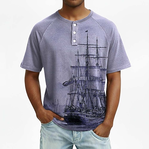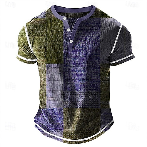 Per uomo Grafico Vintage Maglia Henley Maglietta Manica Corta Moda Designer Casual Quotidiano All'aperto Primavera Estate Tutte le stagioni Blu Verde Viola Cachi Henley Maglietta Henley