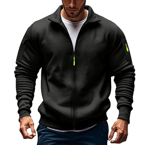 Per uomo Felpa con cappuccio Felpa con cappuccio a zip intera Felpa con cappuccio in pile Felpa con cappuccio tattica Nero Bianco Verde militare Rosso Blu marino Colletto Mao Semplice Cerniera Sport