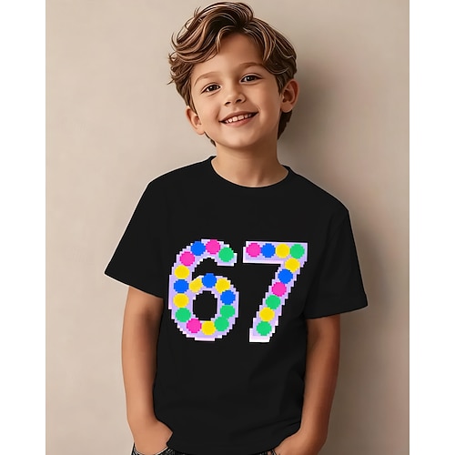 Cotone Bambini Ragazzi Nero Grafico Gergo divertente 67 Maglietta Blusa Girocollo Manica Corta All'aperto Abbigliamento Quotidiano Moda Streetwear Designer Stampa Estate
