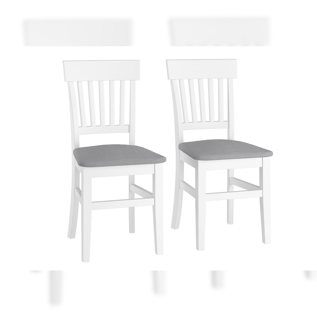 Erst-Holz Klassischer weißer Holzstuhl aus massiver Kiefer, Sitzpolster grau V-90.71-27W-P21