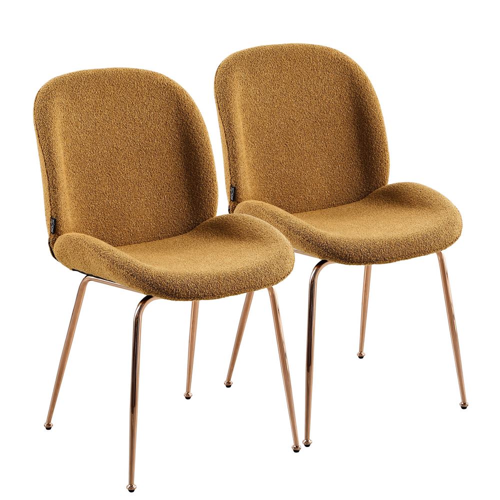 Sedia in tessuto boucle' ocra 48x62x86 cm struttura oro rosa