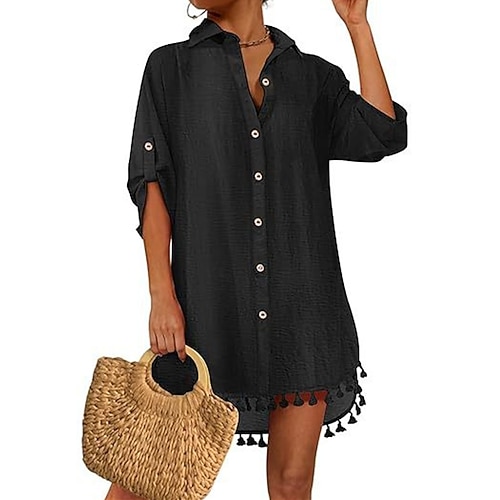 Per donna Mini Abito Abito Bianco Abito da Spiaggia Abito nero Abito Camicia Elegante Moda Classico Quotidiano All'aperto Spiaggia Vestibilità comoda Semplice Manica 3/4 Colletto a Camicia Nero Bianco