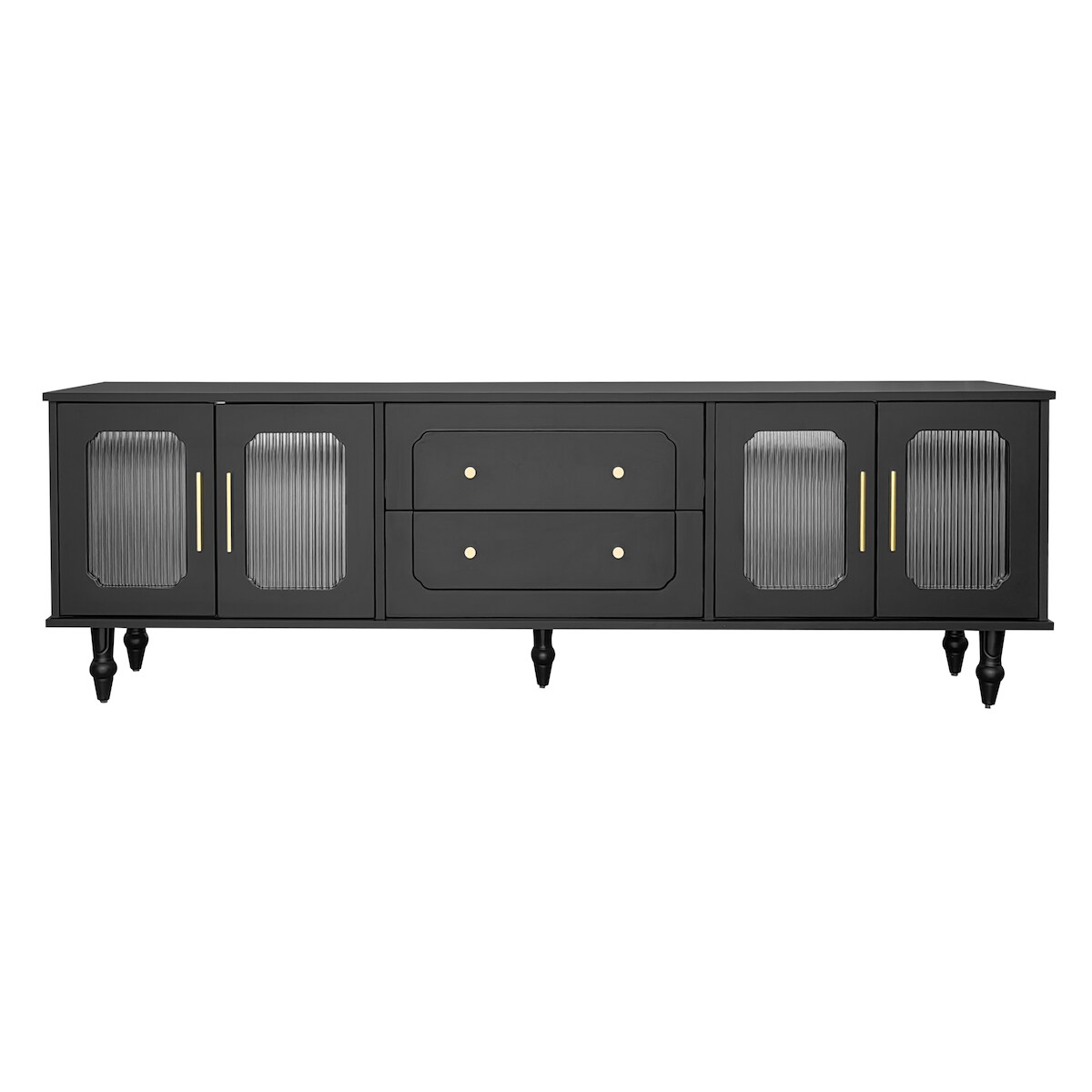 STILVORA Sideboard Schwarz 138x39x104 cm mit 360 Grad Drehregal 4 Schubladen offenen Ablagen MDF Platte Metallrahmen für Wohnen Büro