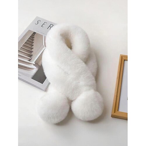 sciarpa natalizia da donna in pelliccia sintetica di coniglio con pompon, accessorio invernale morbido e accogliente per feste e regali