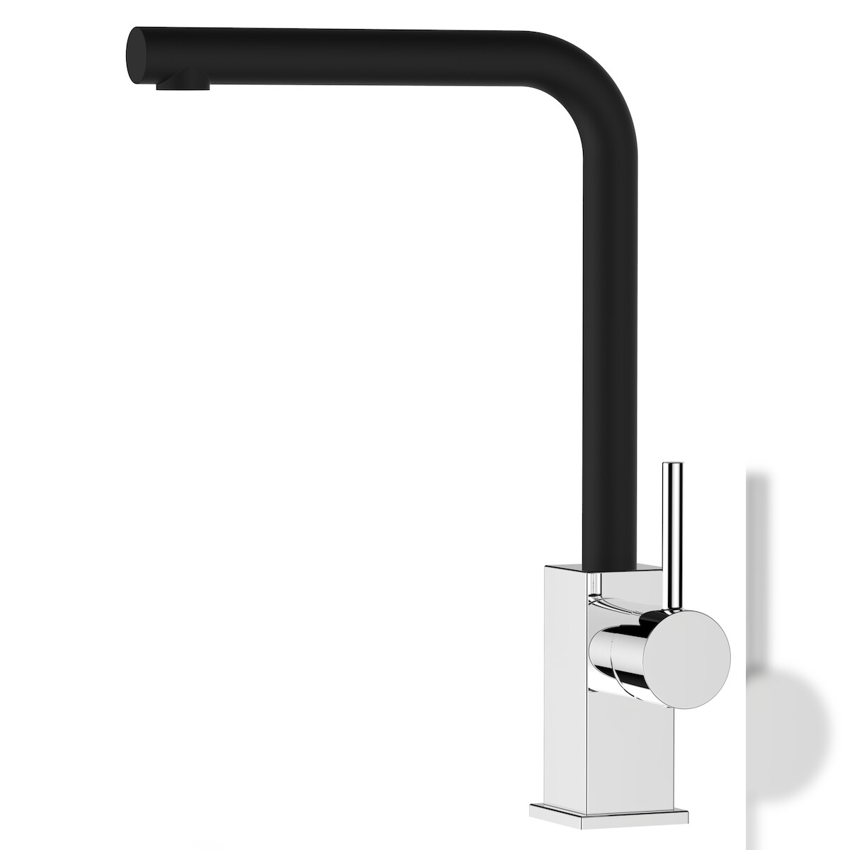 Vizio Wasserhahn Küchenarmatur Spültischmischer, Verchromt mit 360° schwenkbarem L-Auslauf Schwarz Granit, Quadratisches Design
