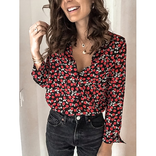 Per donna Blusa Floreale Geometrico Elegante Casual Manica Lunga Colletto a Camicia Top Regolari Quotidiano Bottoni Stampato Argento Rosso Oro Primavera Autunno Inverno