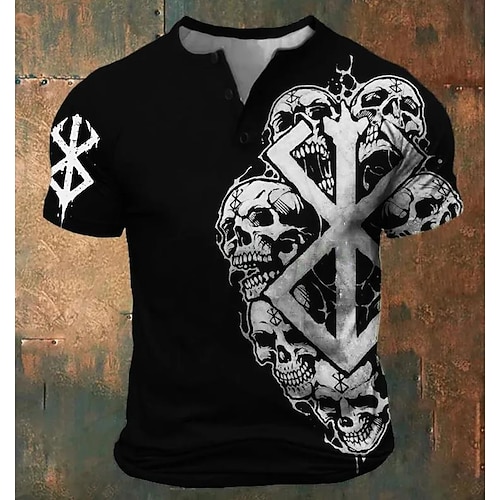 Per uomo Teschio Teschi Maglietta Maglia Henley Manica Corta Designer Retrò Vintage Casuale Quotidiano Streetwear Estate Primavera Tutte le stagioni Nero Rosso Henley Maglietta Henley