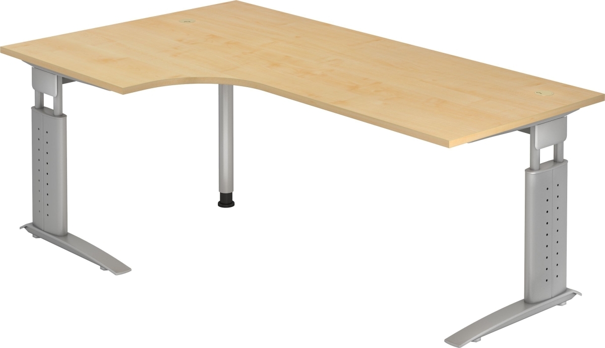 Hammerbacher Winkeltisch C-Fuß 200x120cm 90 Grad Ahorn/Silber