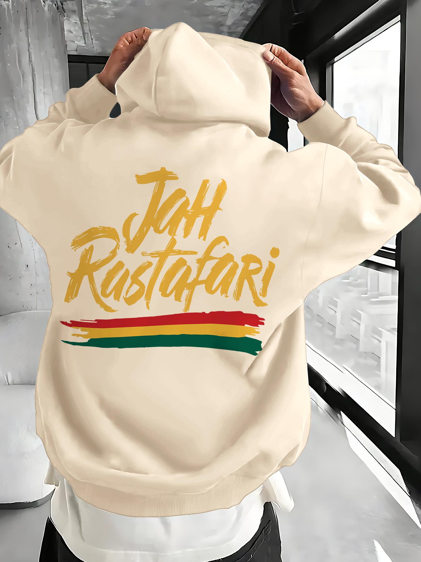 Heren Rode Rasta Leeuw van Juda Print Hoodie - Jah Rastafari Reggae Grafische Pullover met Groene/Gele/Gouden Letters cm