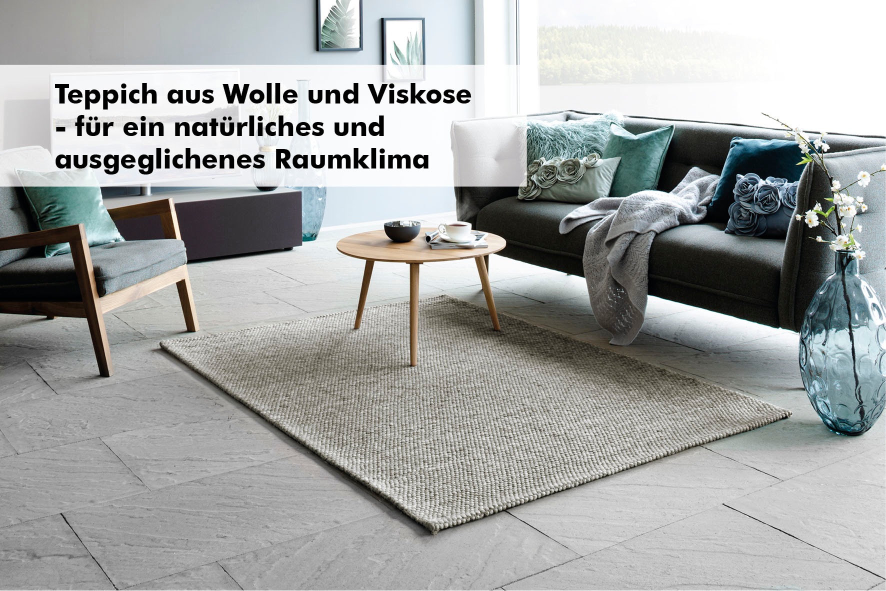 Teppich BARBARA BECKER "Brave" Gr. 4, grau, B:140cm H:12mm L:200cm, Viskose, Wolle, Teppiche, Handweb, Material 50% Wolle, 50% Viskose, handgewebt, melierte Optik