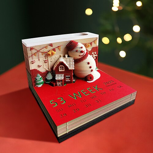 Blocco note 3D, calendario di Natale 2026, calendario 3D, calendario creativo da scrivania con luce, creativo, intaglio di carta da strappare, orologio, calendario per regali di Natale, regali di