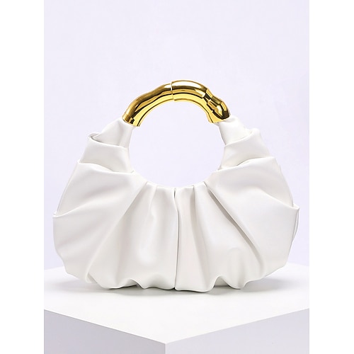 borsa da donna in similpelle con arricciature e manico dorato, elegante stile minimalista, opzioni multicolor, borsa da sera chic per invitati a matrimoni, cocktail party ed eventi formali
