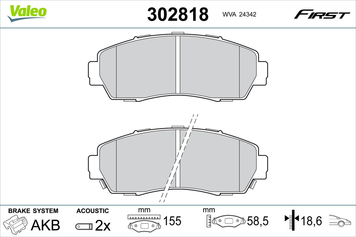 VALEO Bremsbelagsatz, Scheibenbremse 302818 vorne rechts links für CHANGAN HONDA (DONGFENG) 45022-T1G-G01 45022-T1G-G00 45022-T1GG01