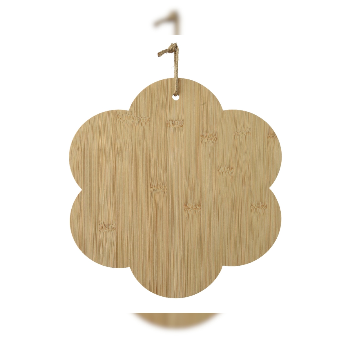 Decoris Schneidebrett 30cm Bambus Blumenform Holzschneidebrett Küchenbrett Vesperteller Holztablett Servierbrett Brotzeitbrett Essbrett