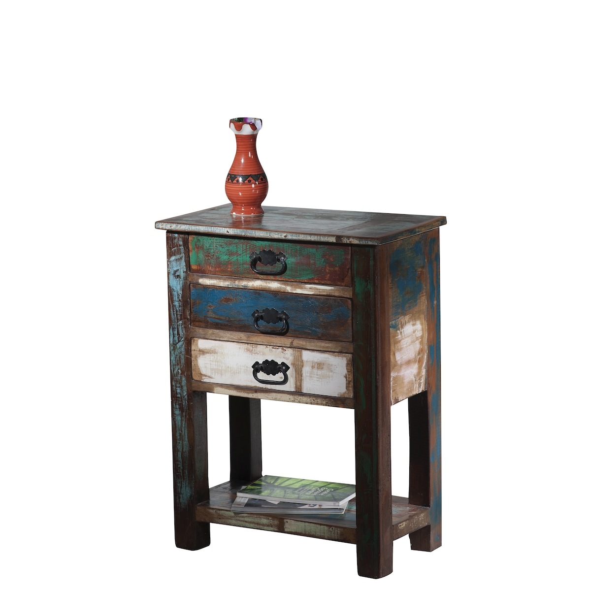 SIT Möbel Telefontisch | 3 Schubladen, 1 Ablageboden | Altholz bunt | B 60 x T 32 x H 79 cm | 09156-98 | Serie RIVERBOAT