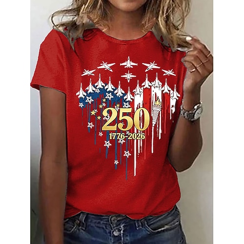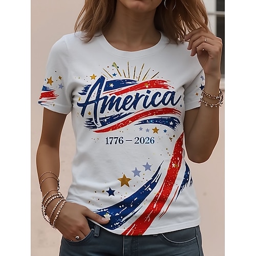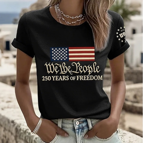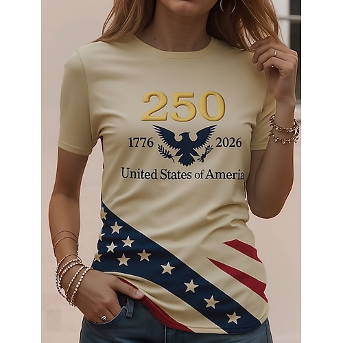 Maglietta patriottica per il Giorno dell'Indipendenza Donna 250° Anniversario Americano Maglietta Grafica Bandiera Vintage Elegante Classico Manica Corta Girocollo Collo Rotondo Stampa Quotidiana