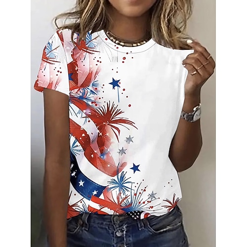 Giorno dell'Indipendenza Americana Per donna Maglietta Stampato Grafico Bandiera Elegante Classico Casual Manica Corta Girocollo Top Regolari Quotidiano Bianco Rosso Rosso / blu Estate Primavera