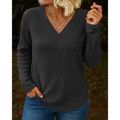 Per donna Blusa Tinta unica Elegante Casual Manica Lunga Scollo a V Top lunghi Quotidiano Cerniera Bottoni Nero Vino Viola Grigio Primavera Autunno Inverno