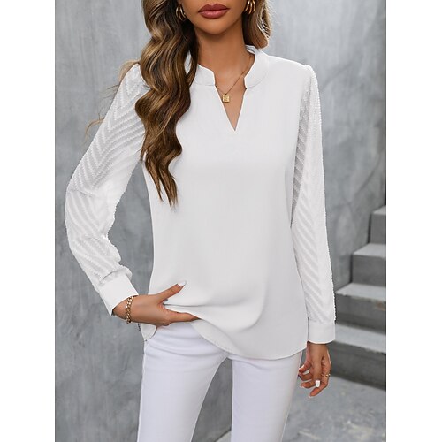 Per donna Blusa Tinta unica Elegante Quotidiano Casual Manica Lunga Scollo a V Top Regolari Quotidiano Patchwork Rete Nero Bianco Rosa Estate Primavera Autunno
