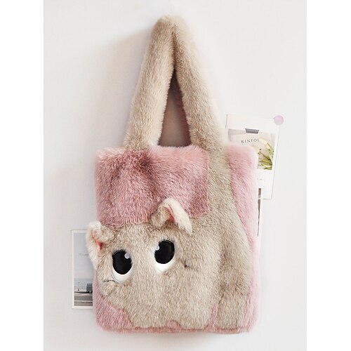 Borsa tote da donna in peluche con faccia di gatto, disponibile in più colori, materiale in morbida pelliccia, design carino e giocoso per uscite informali e regali