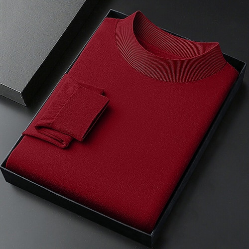 Per uomo Dolcevita Maglione A Coste Maglia Top Regolari Lavorato a maglia Semplice Collo Alto Essenziale Tenere al Caldo Casuale Abbigliamento quotidiano Abbigliamento Autunno Inverno Nero Rosso M