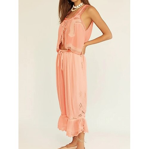 Per donna Set di Pantaloni Bolero Top Senza Maniche Collo quadrato Semplice Arricciato Pizzo Patchwork Attivo Moda Streetwear Casuale Quotidiano All'aperto Bianco Rosso Marrone Estate Vestibilit