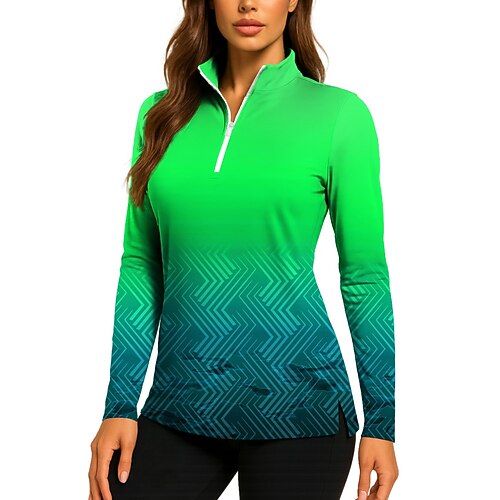 Per donna Geometrico Sfumatura Top Polo da golf Maglia da tennis Manica Lunga Stampato Zip a un quarto Pullover Protezione UV Elastico Traspirante Tennis Golf Pickleball Collo alla coreana Collo con