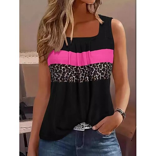 Per donna Canotta Stampato A righe Moda Elegante Casual Senza Maniche Collo quadrato Top Regolari Quotidiano Uscire Weekend Nero Rosa Rosso Blu marino Estate Primavera