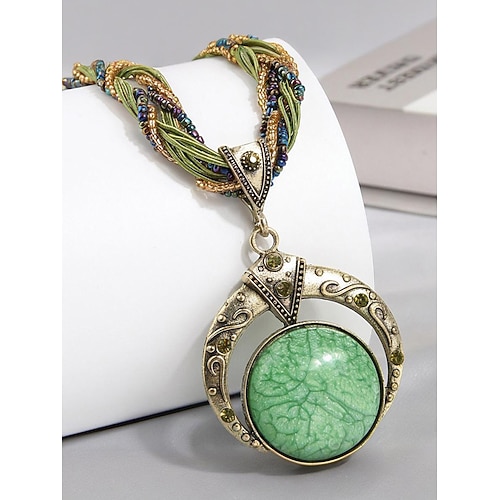 Collana in lega bohémien da donna con corda di perline multicolori, ciondolo dal design unico, perfetta per un abbigliamento casual e da festa