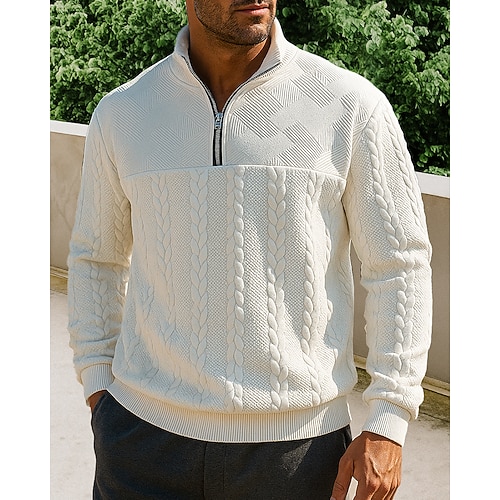 Per uomo Top casual Felpa lavorata a maglia Cerniera a un quarto Maglia a trecce Manica Lunga Top Athleisure Tinta unita Di tendenza Caldo All'aperto Viaggio Sportivo abbigliamento sportivo