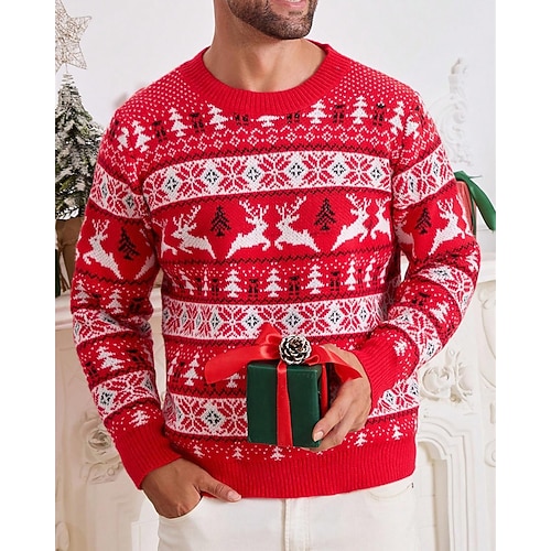 Per uomo Maglione di Natale Brutto maglione di Natale Maglioni di Natale Maglione per le feste Maglione A Coste Maglia Top Regolari Lavorato a maglia Ogni Girocollo Moda Essenziale Natale Vacanza