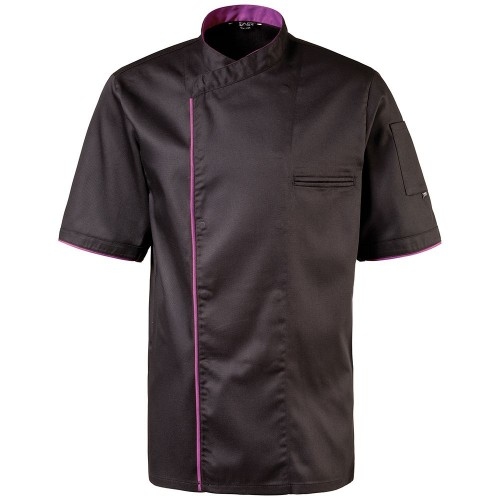 Exner 224 - Kochjacke halbarm, Druckknöpfe, Fb. schwarz mit farbiger Paspel : purple 65% Polyester 35%Baumwolle 220 g/m² XS