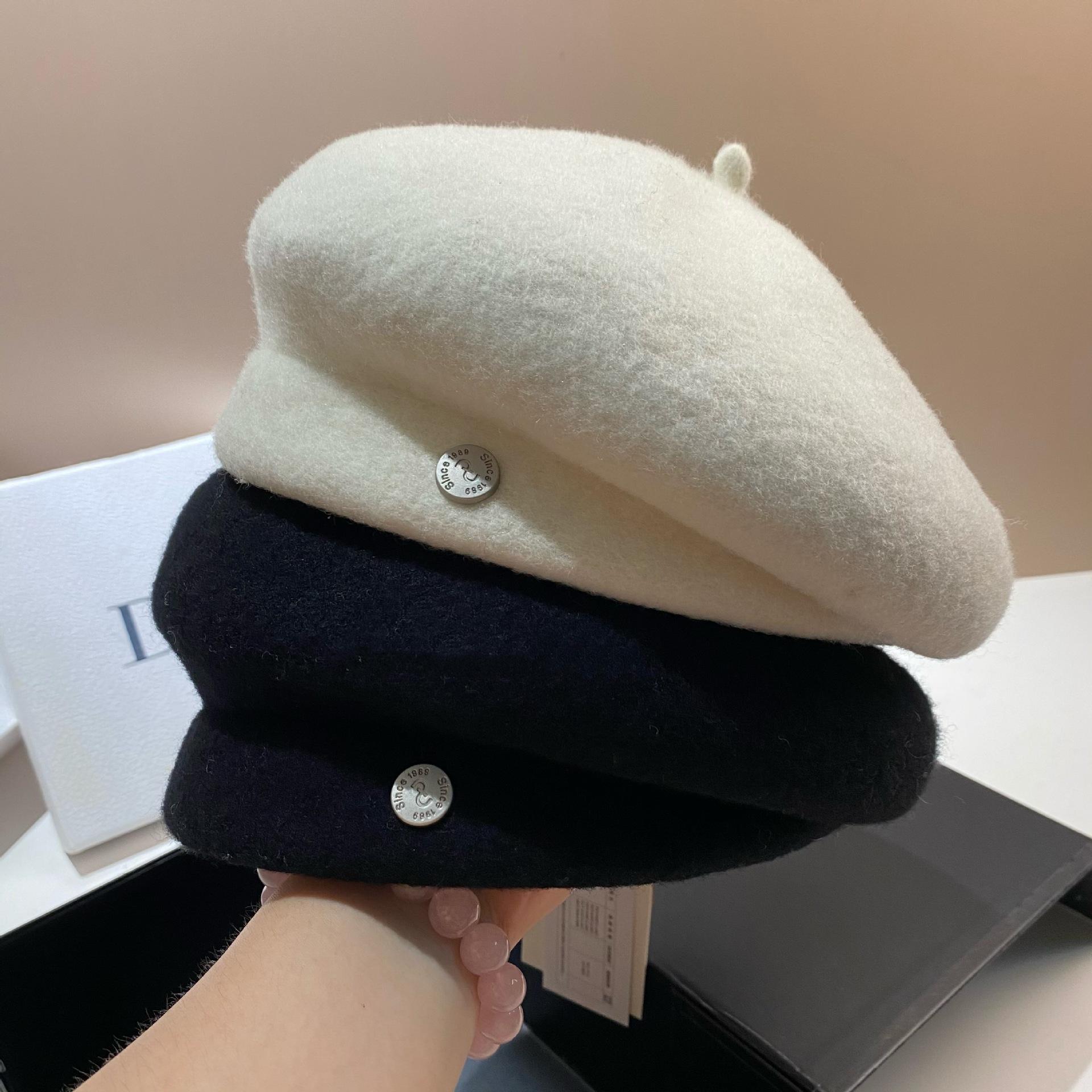 Warm Sun In Winter~ Japanese Sweet Retro Wool Beret High Quality Designer Irregular Painter Hat cm black