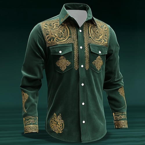 Festa di San Patrizio Per uomo Floreale intricato Arte celtica Camicia Camicia con Bottoni Manica Lunga Vintage Retrò Feste Ferie Primavera Autunno Collo ripiegato Stampa 3D Due tasche anteriori
