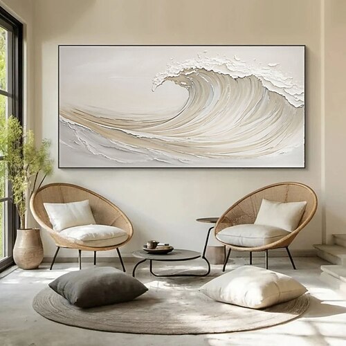 dipinto a olio originale fatto a mano su tela con onde testurizzate in 3D, arte murale astratta con oceano, grande decorazione murale su tela, opera d'arte costiera neutra, arte murale per soggiorno