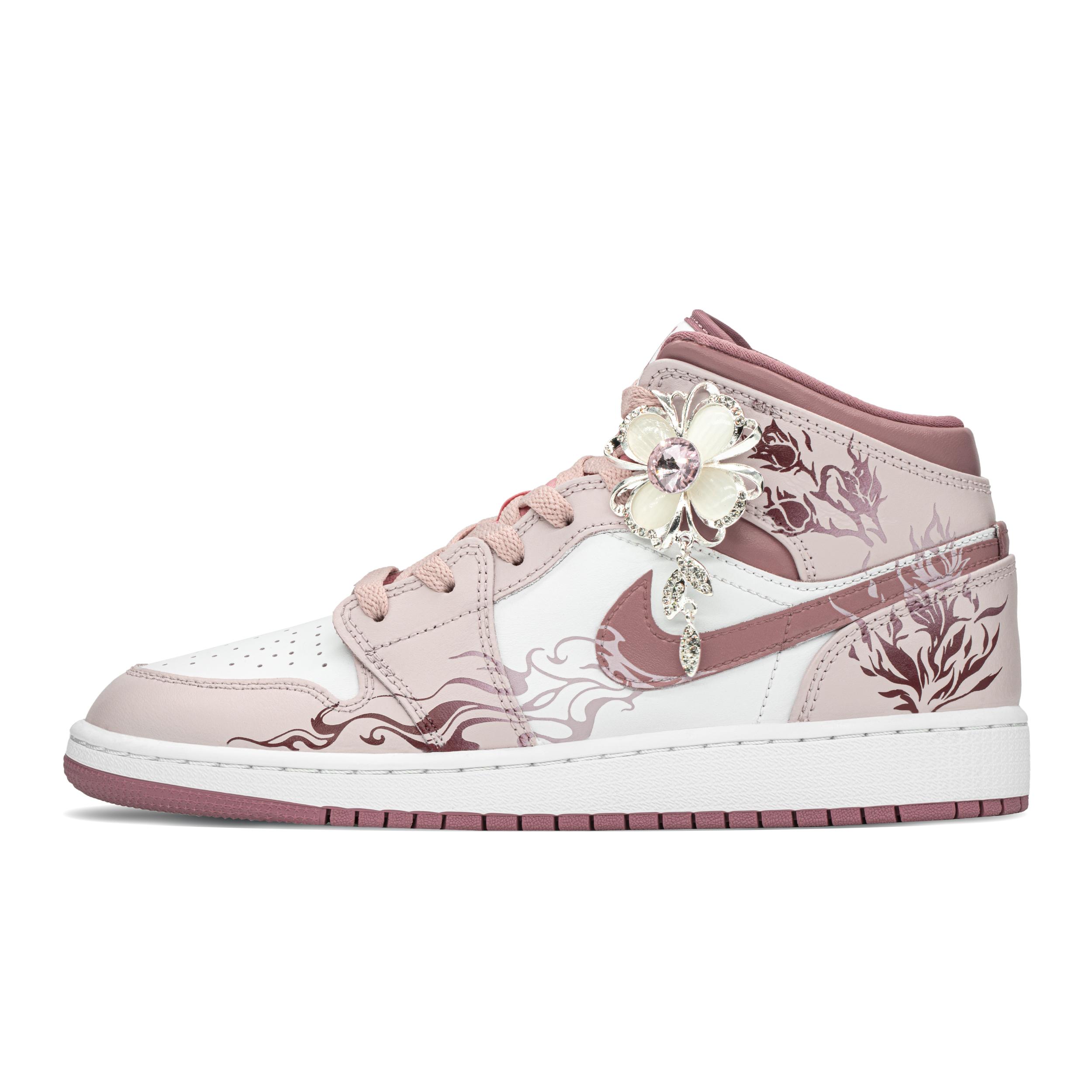 Jordan Air Jordan 1 Höjförhöjande Höjförhöjande Mellanhöga Vintage Basketkängor GS Rosa Beige DQ8423-616(TeamA-) cm
