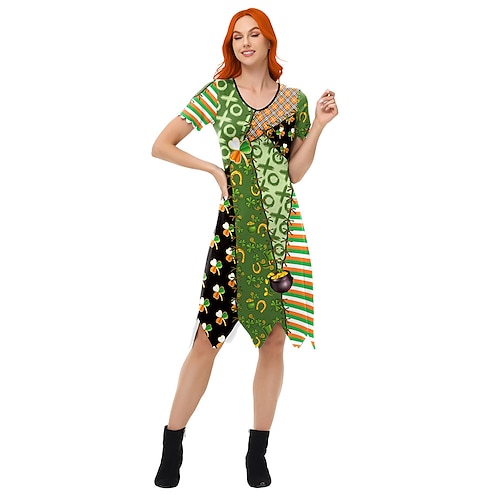 San Patrizio 2026 Clover Trifoglio Irlandese fortunato Carnevale Vestito Innovativo Divertente Adulti Per donna Carnevale Giorno di San Patrizio Feste Costume di Carnevale facile Vestirsi