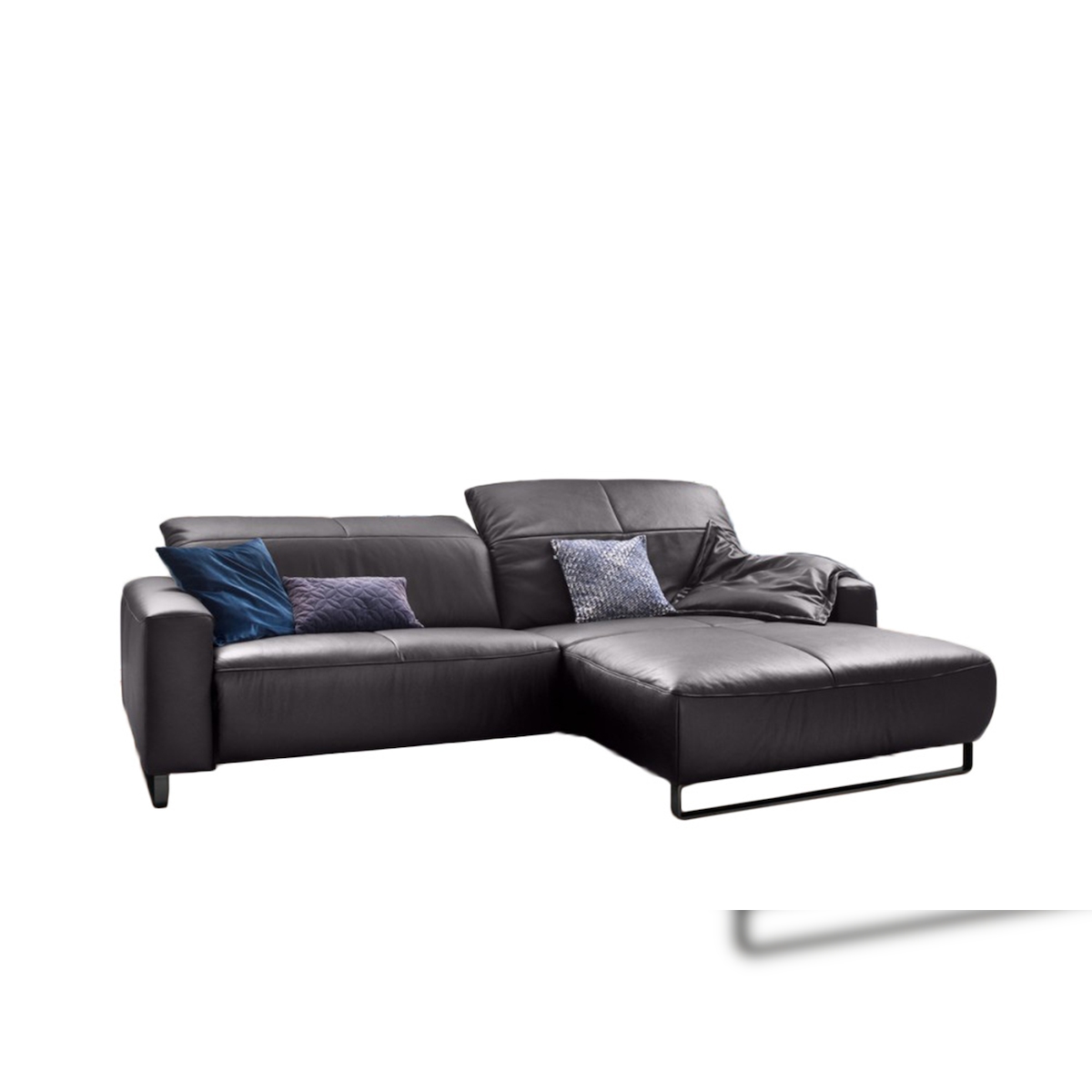 KAWOLA Sofa YORK Leder Life-line mocca Rec links Fuß Metall Chrom matt mit Sitztiefenverstellung