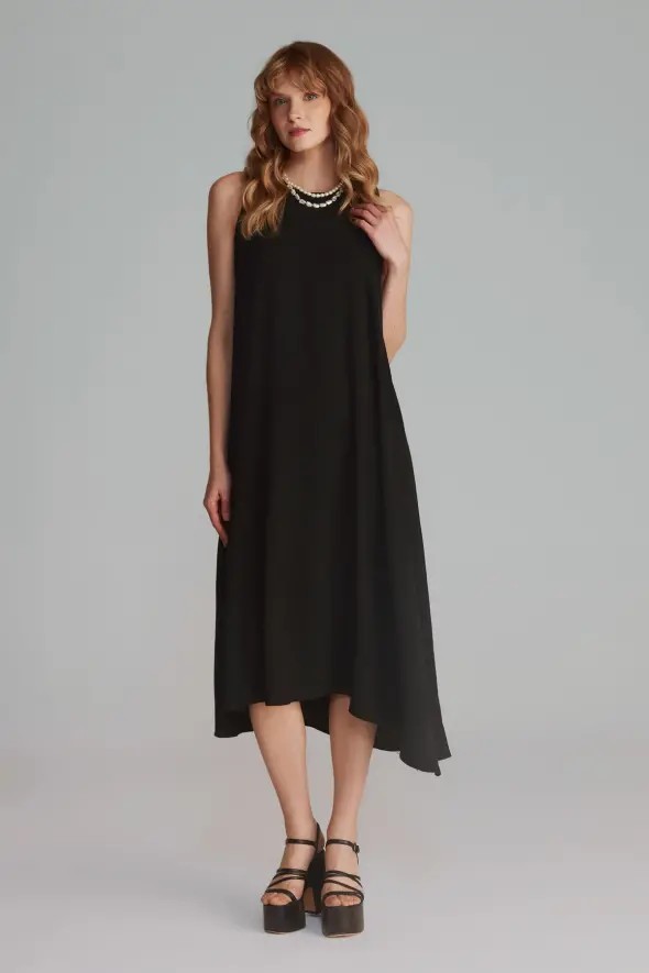 Gusto Womens Long Dress With Tie Detail - Black - Size Small | Gusto Sale | Discount Designer Brands