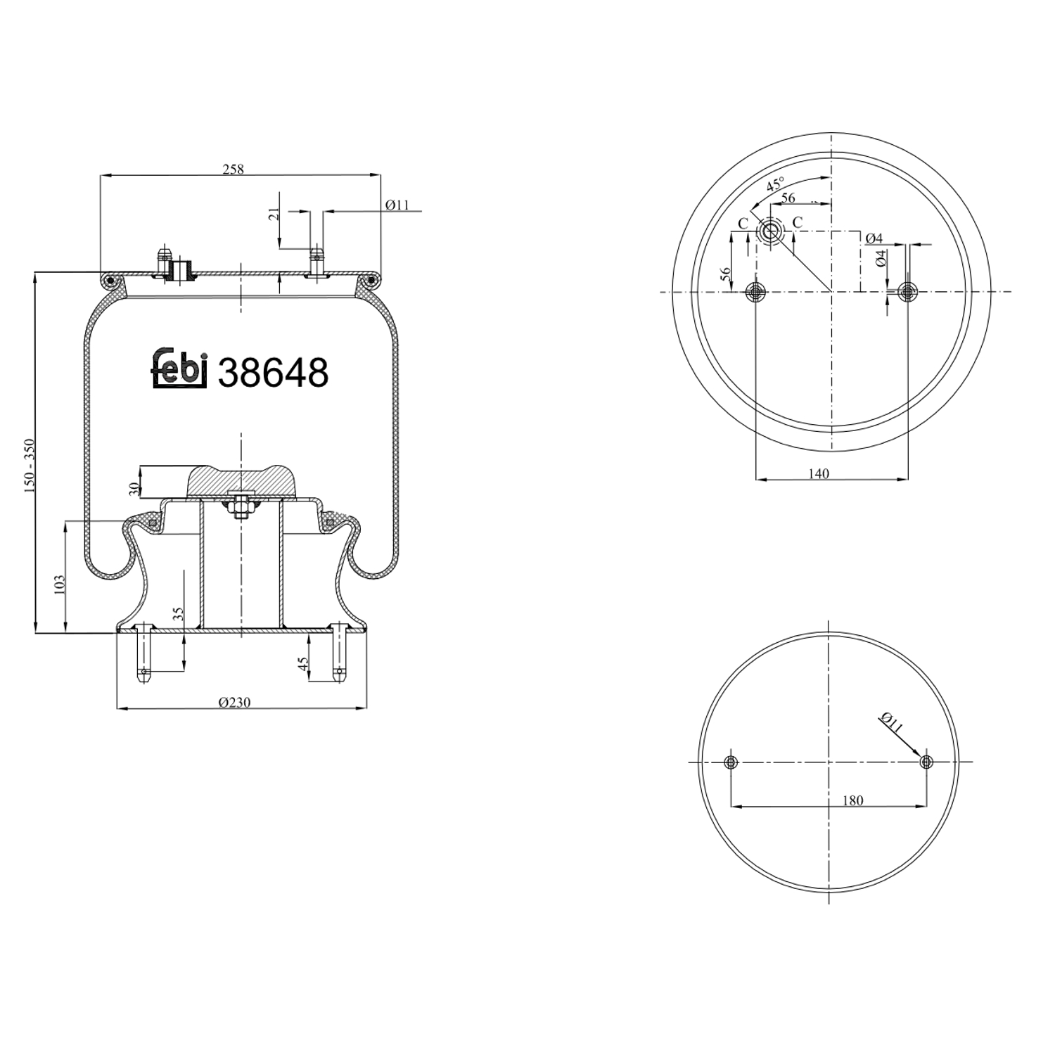 FEBI BILSTEIN Federbalg, Luftfederung 38648 Universal vorne rechts links mit Kolben 230mm
