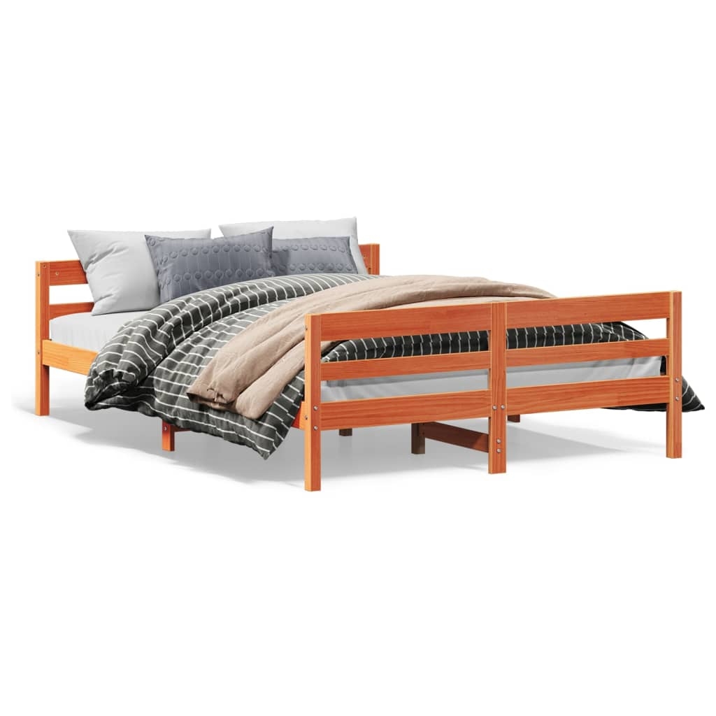 vidaXL Massivholzbett ohne Matratze Wachsbraun 160x200 Kiefernholz