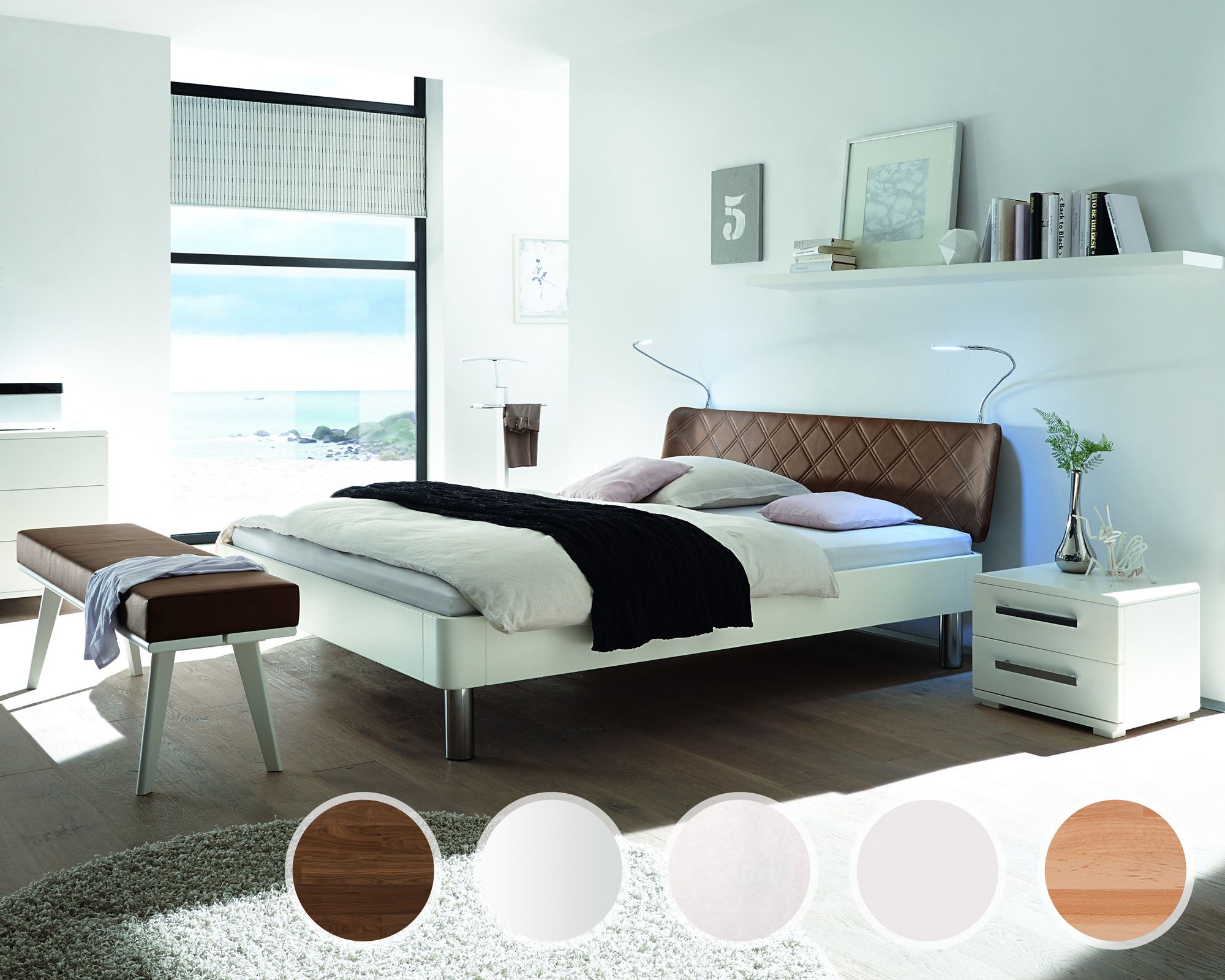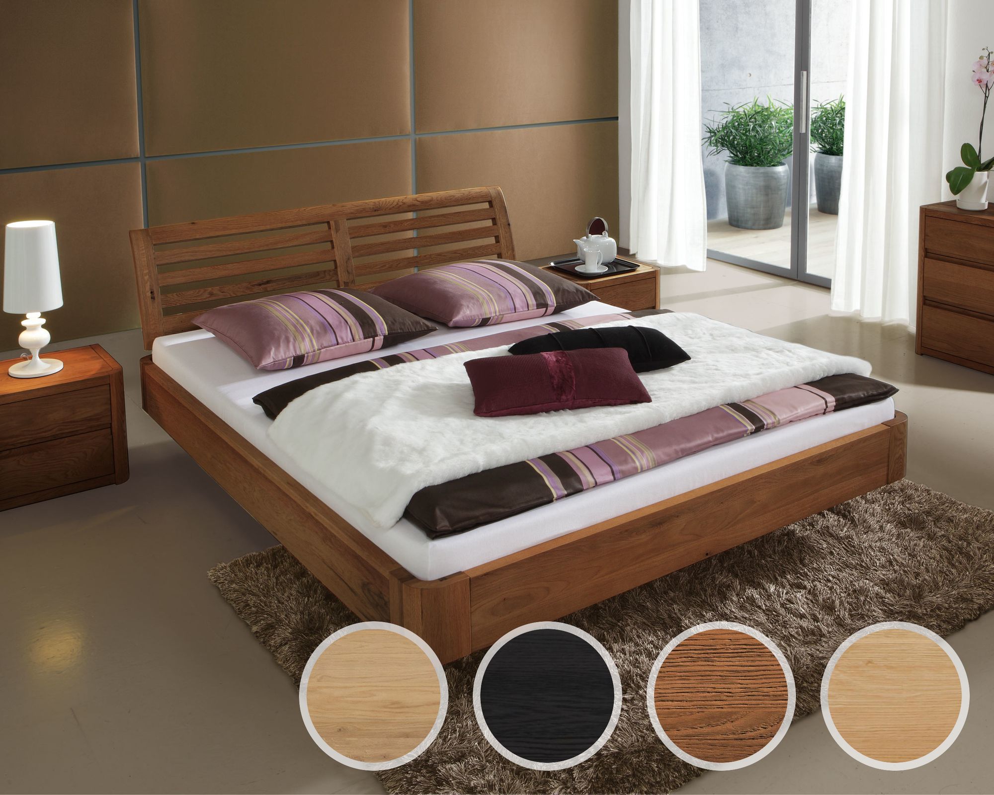 Hasena Fine-Line Massivholzbett Syma Ronda/Almeno 200x200 cm / Nussbaum, geölt