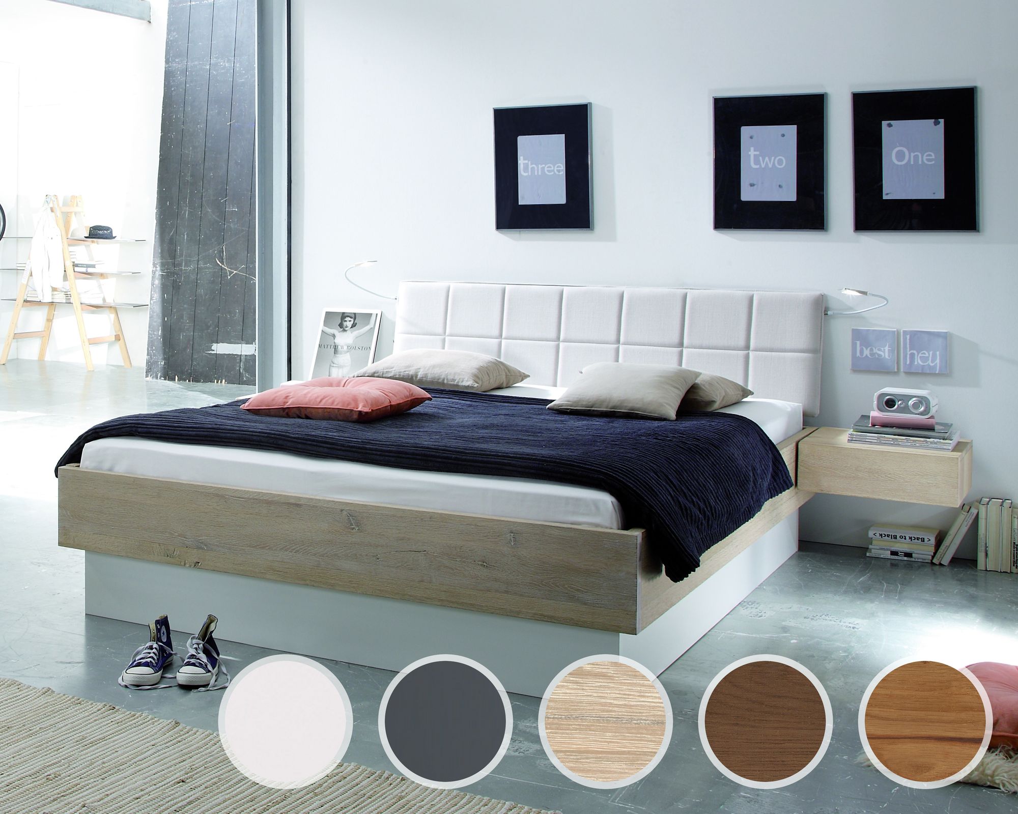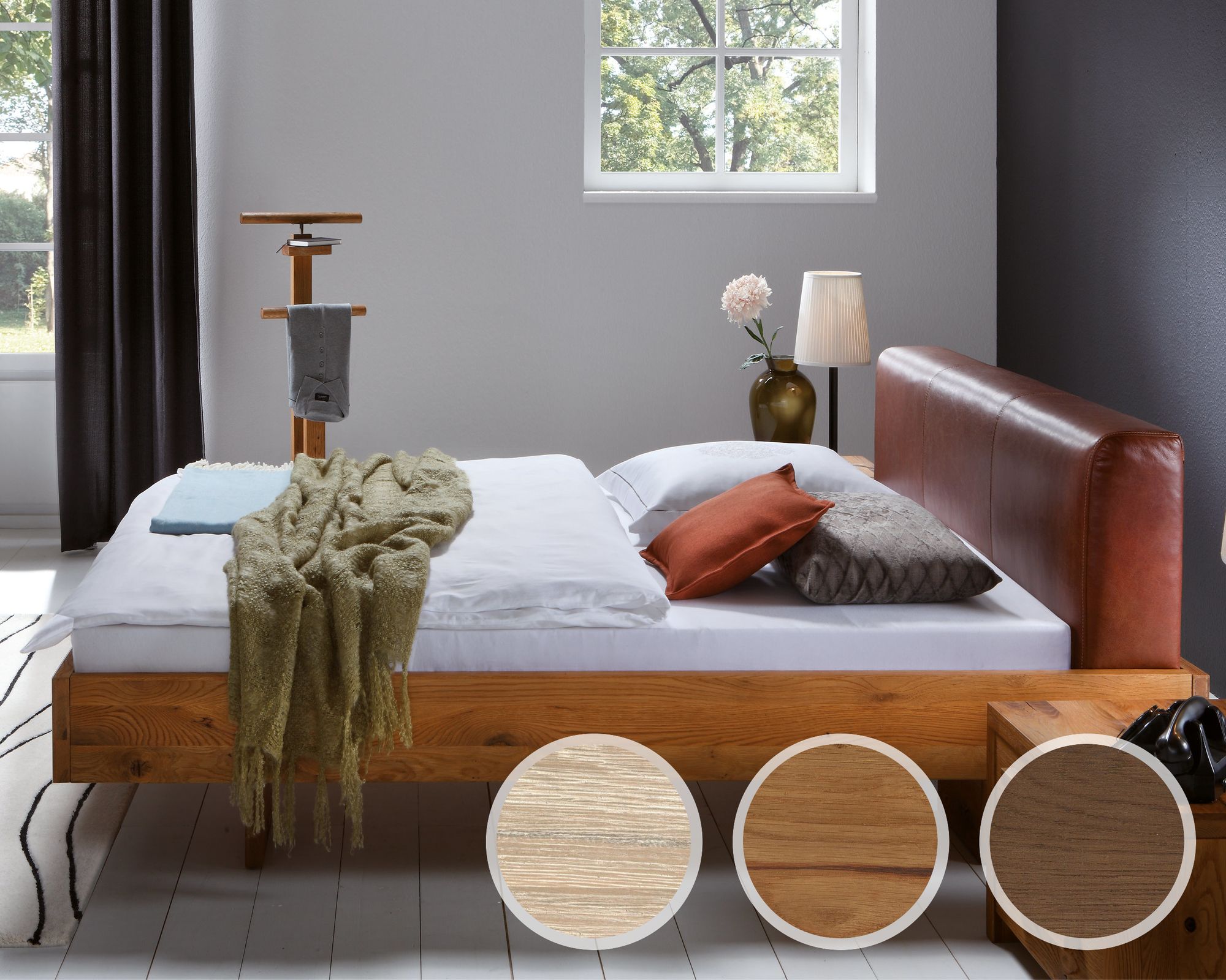 Hasena Oak-Line Wild Massivholzbett Cadro Practico 200x200 cm / Wildeiche natur, gebürstet, geölt / Anthrazit