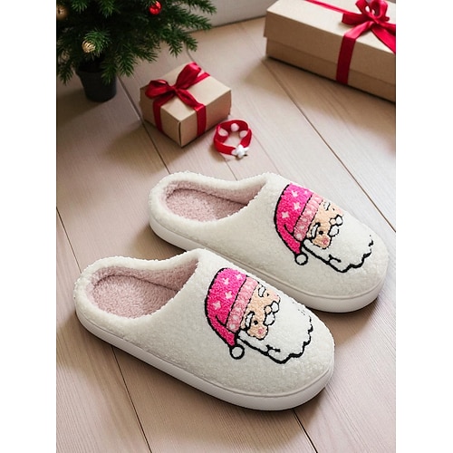 pantofole natalizie da donna con motivo di Babbo Natale, calde pantofole da casa per il comfort domestico durante le vacanze invernali