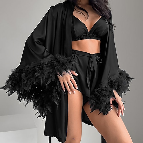 Per donna Abbigliamento da Casa Camicia da Notte Moda Casual Colore Puro Patchwork Elastico in vita Piuma Shorts Casa Vacanza Manica Lunga Scollo a V Blu Nero Bianco Estate Primavera Vestibilit