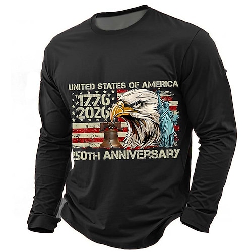 Felpa da uomo con grafica, bandiera americana, 250° anniversario, sportiva, moda, quotidiano, classica, girocollo, per attività all'aperto, vacanza, blu, nero, rosso, verde, stampa, primavera,